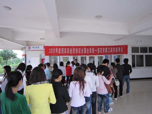 2010年5月22日-23日,2010年國家職業(yè)資格證全國全省統(tǒng)一鑒定考試在我院舉行。根據(jù)國家、省人力資源和社會保障部門安排,我院共設(shè)立14個考場,來自安徽三聯(lián)學(xué)院、濱湖職業(yè)技術(shù)學(xué)院、合肥財經(jīng)職業(yè)學(xué)院、安徽財貿(mào)職業(yè)學(xué)院、合肥工業(yè)經(jīng)濟學(xué)院5所高校407名考生,在我院考點參加資格證統(tǒng)一鑒定考試。